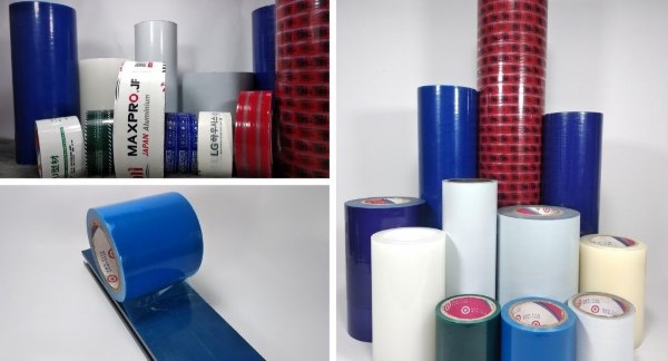 Nhôm thanh và tấm nhôm: Đây là vật liệu rất dễ bị oxi hóa và trầy xước khi gia công. Việc sử dụng màng bảo vệ bề mặt nhôm với độ dính trung bình, thường là màu trắng đen hoặc xanh biển, giúp ngăn chặn tác động của tia UV và hóa chất trong quá trình thi công.