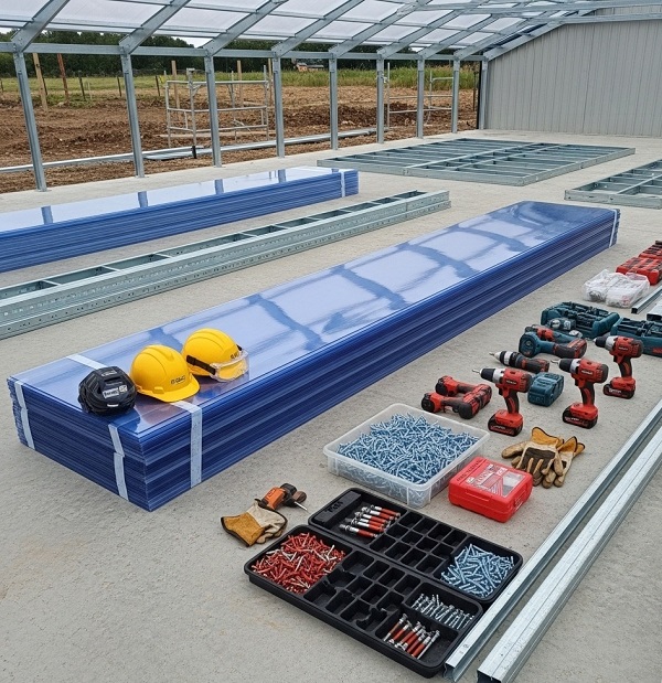 - Dụng cụ thi công: Máy cắt (lưỡi cắt phù hợp cho nhựa), máy khoan, súng bắn vít, thước dây, bút đánh dấu, thang/giàn giáo an toàn.