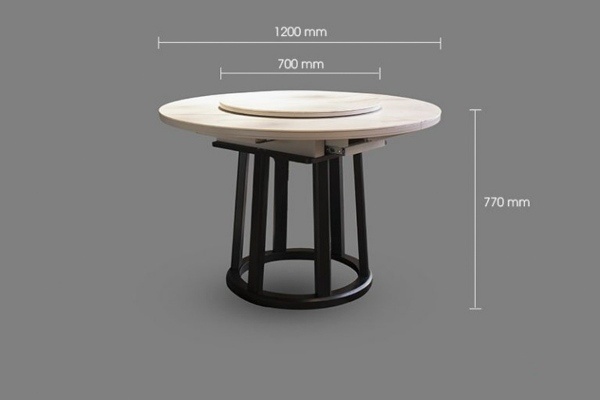 - 10 người: Đường kính khoảng 155cm, cần không gian tối thiểu khoảng 2.65–2.7m để di chuyển xung quanh thoải mái.
