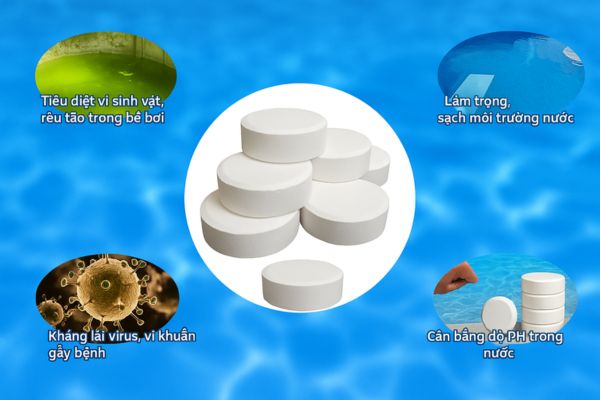 Hóa chất là công cụ không thể thiếu trong cách giữ nước bể bơi sạch nhưng cần được sử dụng đúng quy trình và liều lượng. Clo là chất diệt khuẩn chủ lực có thể dùng dạng viên, bột hoặc dung dịch. Algaecide được sử dụng để ngăn ngừa và tiêu diệt rêu tảo. Ngoài ra, bạn nên thực hiện sốc clo một đến hai lần mỗi tháng hoặc sau khi bể có nhiều người sử dụng để tiêu diệt hoàn toàn vi khuẩn. Điều quan trọng là phải hòa tan hóa chất trong xô nước trước khi cho vào bể và tuyệt đối không trộn lẫn nhiều loại hóa chất cùng lúc để tránh phản ứng nguy hiểm.