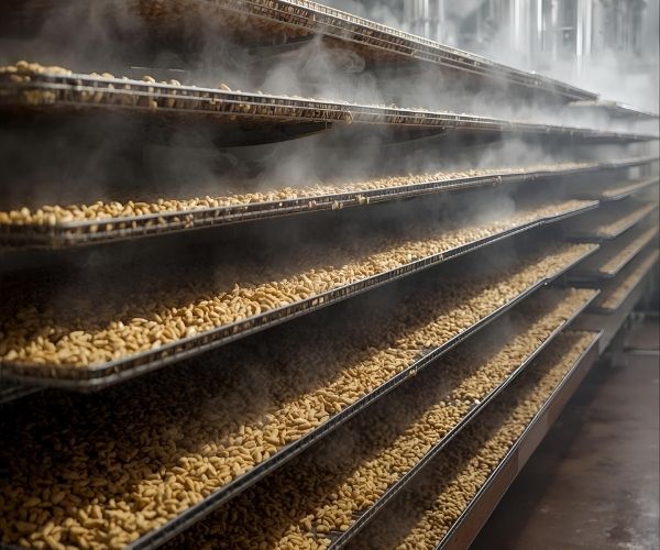 Nhiều dây chuyền sấy dùng hơi nóng từ lò hơi để tạo ra môi trường ổn định, giúp làm khô thực phẩm mà vẫn giữ màu sắc và giá trị dinh dưỡng. Điển hình như sấy hạt điều, cà phê, trái cây, ngũ cốc, bột thực phẩm hay các nguyên liệu dùng cho sản xuất thức ăn chế biến sâu.